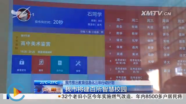 2016年5月17日,我公司參加由廈門(mén)教育局主辦,廈門(mén)市教育信息技術(shù)中心承辦的廈門(mén)市2016年教育信息化工作會(huì )議。 會(huì )議議程主要有教育信息化工作總結報告和工作部署,教育信息化典型經(jīng)驗介紹,來(lái)賓發(fā)言以及市教育局領(lǐng)導講話(huà)。 會(huì )議中我公司展示了通軟智慧校園一體化解決方案中的核心硬件設備——交互式智慧教室信息終端(電子班牌),其簡(jiǎn)約大氣的外形,清晰明麗的界面,流暢便捷的使用體驗及多樣化的功能吸引了眾多參會(huì )領(lǐng)導的注意,期間,廈門(mén)衛視對電子班牌的演示進(jìn)行了拍攝,并于17日晚間《廈視新聞》播出。